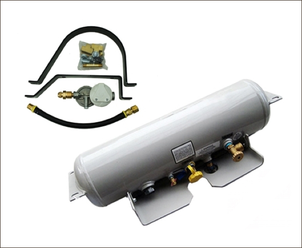 Shiny new propane tank. 3.3 gallon tank is 10% more than the original. Includes a skid plate and is DOT compliant.
